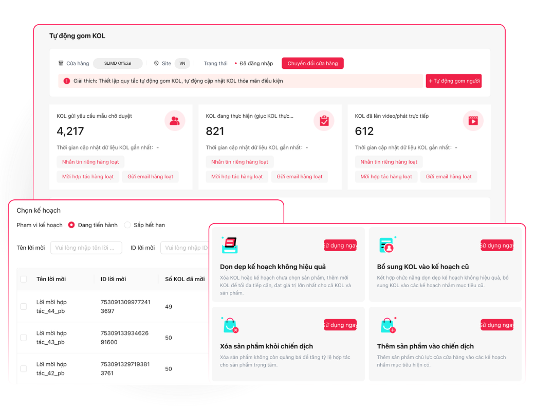 ❖ Gửi lời mời trong vài phút: Tự động hóa toàn bộ quy trình gửi lời mời hợp tác, giúp nhà bán hàng triển khai chiến dịch nhanh chóng chỉ với vài thao tác.