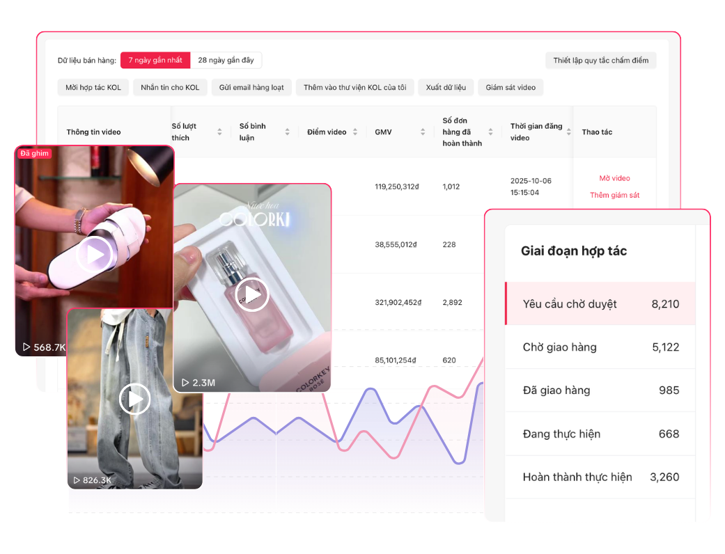 ❖ Theo dõi tiến độ và hiệu quả: Hệ thống quản lý minh bạch, cập nhật theo thời gian thực, giúp theo dõi trạng thái hợp tác, hiệu suất và kết quả từng creator.